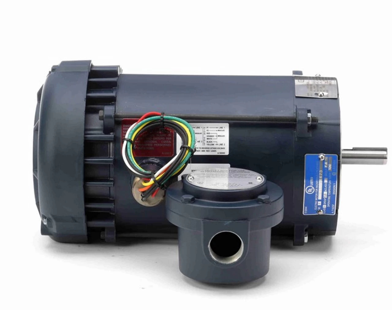 Explosion-Proof motor for use in hazardous environments with a C-face mount. EXP PROOF CL I GR C&D CL II GR F&G T3C. Bolt holes are 3 3/4″ on center measured across the shaft. Wiring diagram on motor name plate. TEFC = Totally Enclosed Fan-Cooled.111097.00