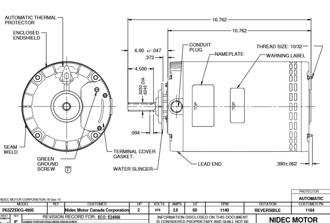 Commercial Condenser Fan Motor. Wiring diagram on motor name plate. OAO = Open Air-Over, P063EKG4995015B
