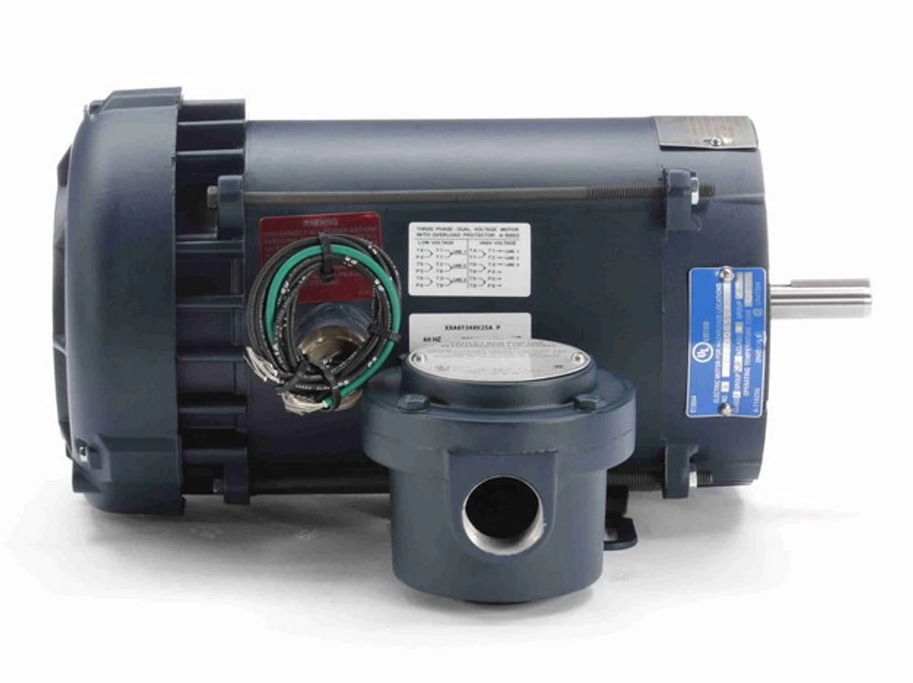 Explosion-Proof motor for use in hazardous environments with a C-face mount. DIV 1 EXP PROOF CL I GR CD CL II GR FG T3C. Bolt holes are 3 3/4″ on center measured across the shaft. Wiring diagram on motor name plate. TEFC = Totally Enclosed Fan-Cooled. 119436.00