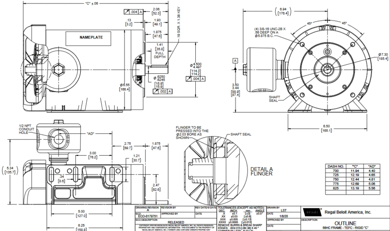 - NEMA 56HC frame, C-face, Stainless Steel Keyed Shaft 5/8″ Diameter x 1 7/8″