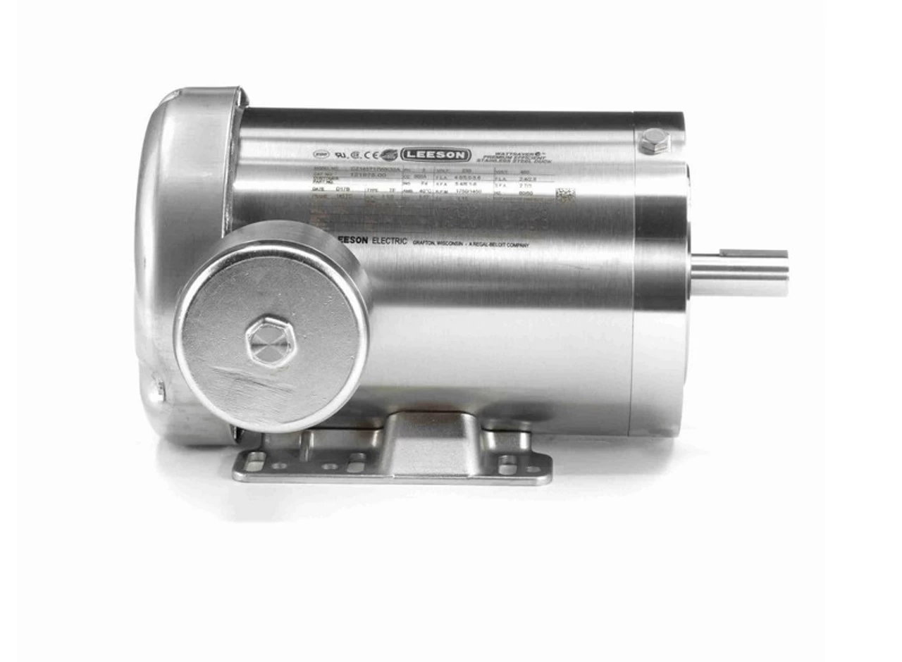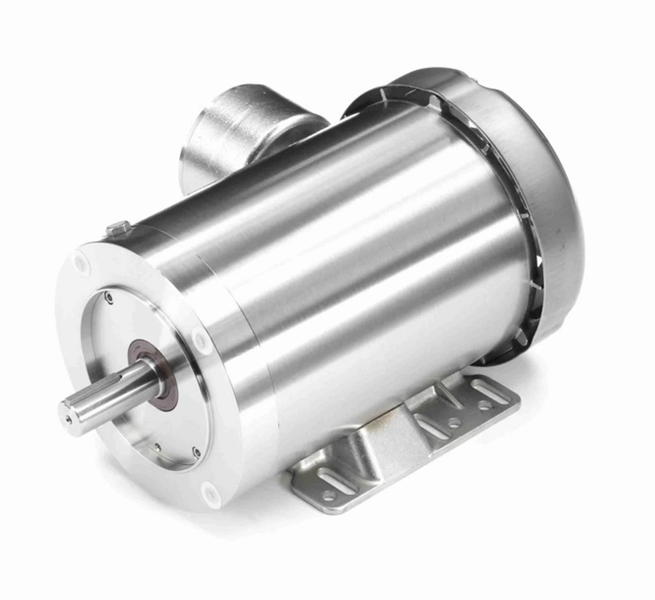 Premium Stainless Steel Wash Duty motor with a C-face mount for use in wet environments requiring the addition of strong corrosive disinfectants . Bolt holes are 3 3/4″ on center measured across the shaft. Wiring diagram on motor name plate. TEFC = Totally Enclosed Fan-Cooled. 121875.00