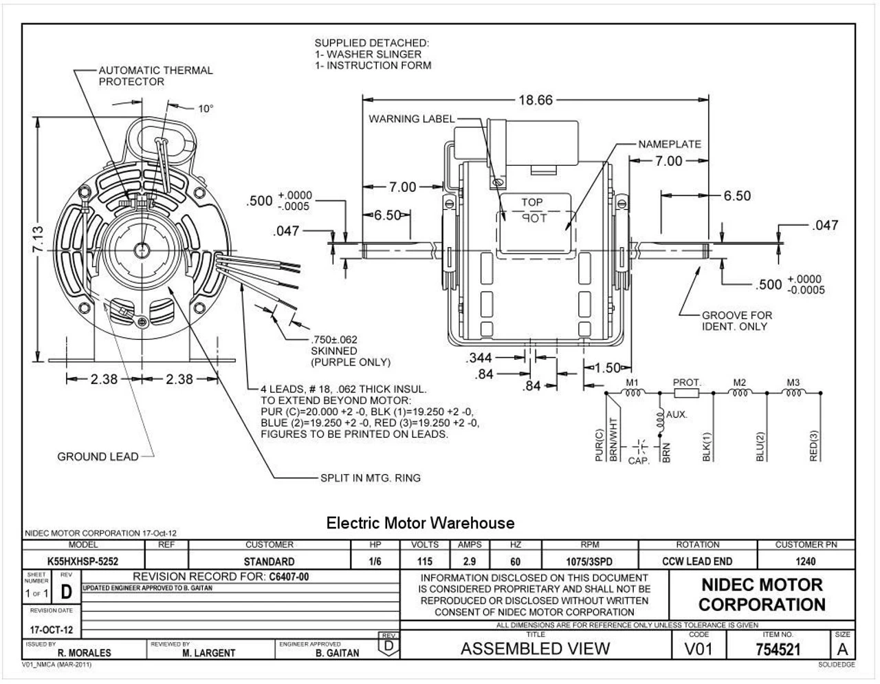 - 1/6 hp 1075 RPM, 2.9 amps 115V 60hz.