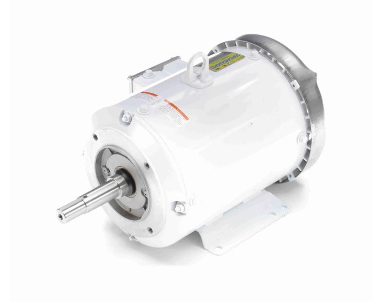 Wash Duty JM frame close-coupled pump motor with a C-face mount for use in wet and misty environments in which the pump head is attached directly to the shaft. Bolt holes are 3 3/4″ on center measured across the shaft. Wiring diagram on motor name plate. TEFC = Totally Enclosed Fan-Cooled. 132443.00