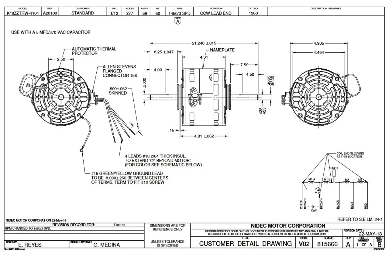 - 1/3 hp 1150 RPM 3-Speed 277V; 0.69 amps