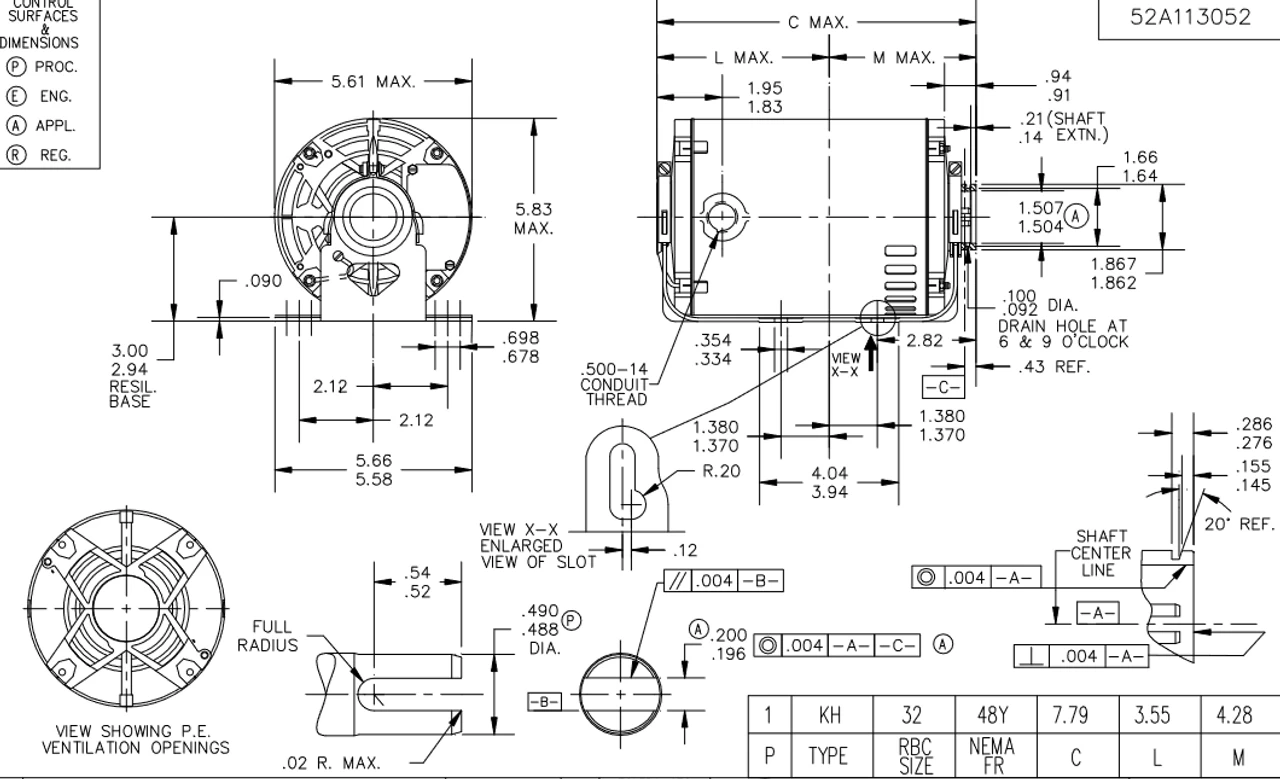 - NEMA 48Y Frame; Special shaft, 60 Hz