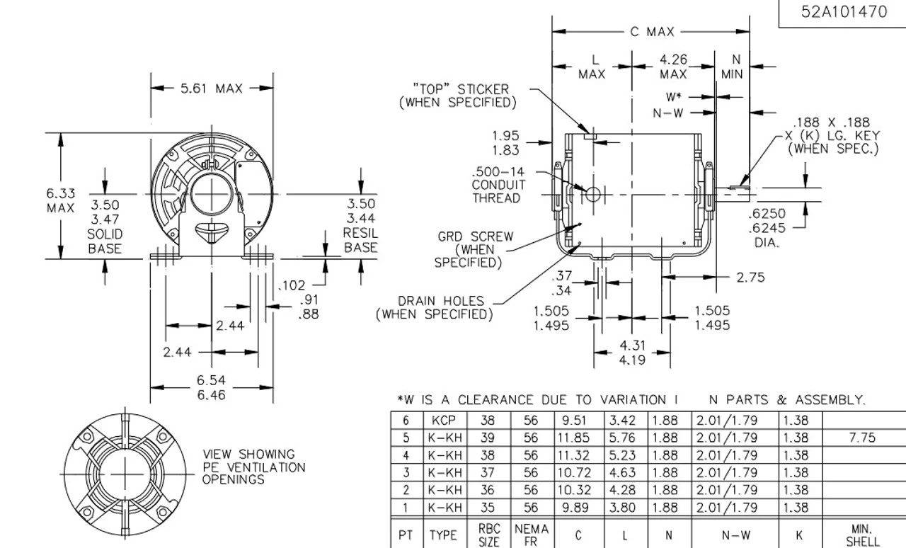 - Resilient Base, Reversible, Ball Bearings, Class B insulation