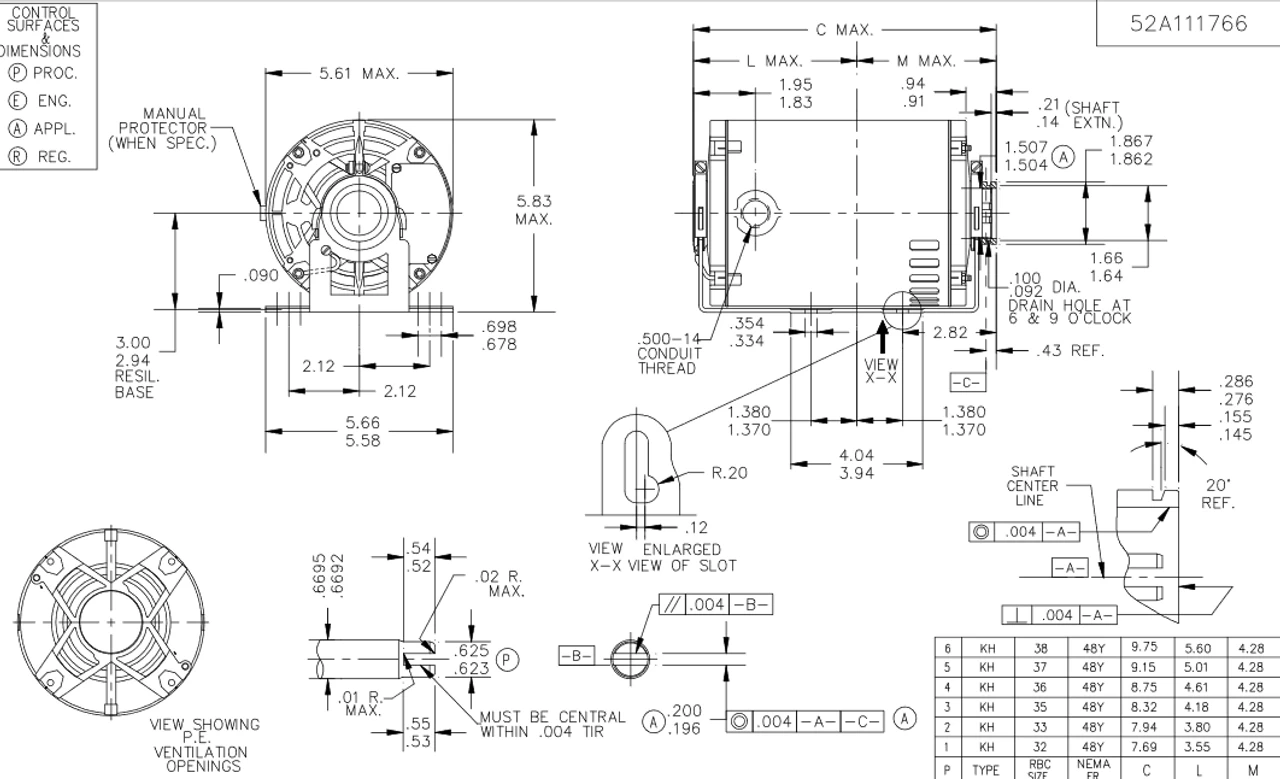 - NEMA 48Y Frame; Special shaft, 50/60 Hz