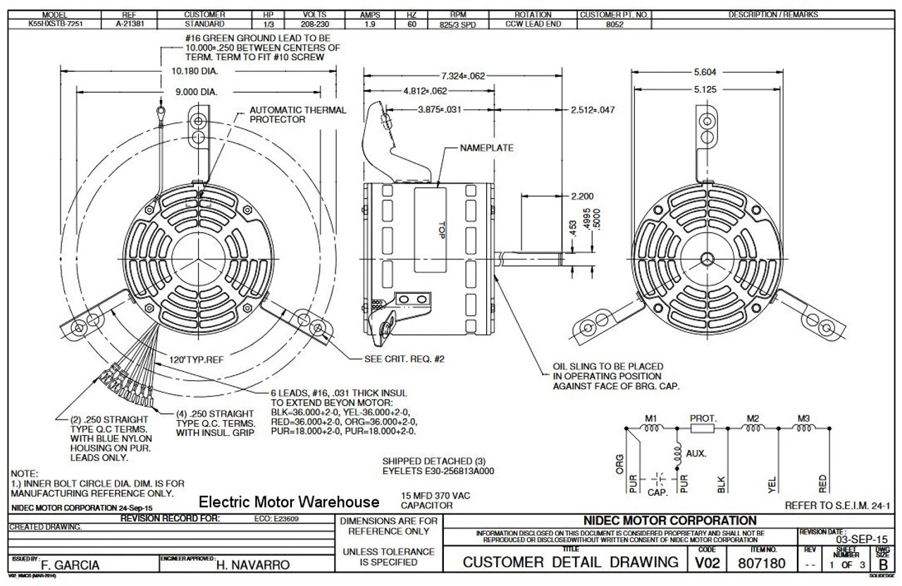 Permanent Split Capacitor Motor. Automatic Overload Protection. Continuous Duty; Open Air Over Enclosure; Class B Insulation; 40C Ambient Temperature; 36″ Leads. Suggested after market replacement for Lennox 65G5901, KA55XJAK2549, 5KCP39NGM981AS, K055STB7251011B