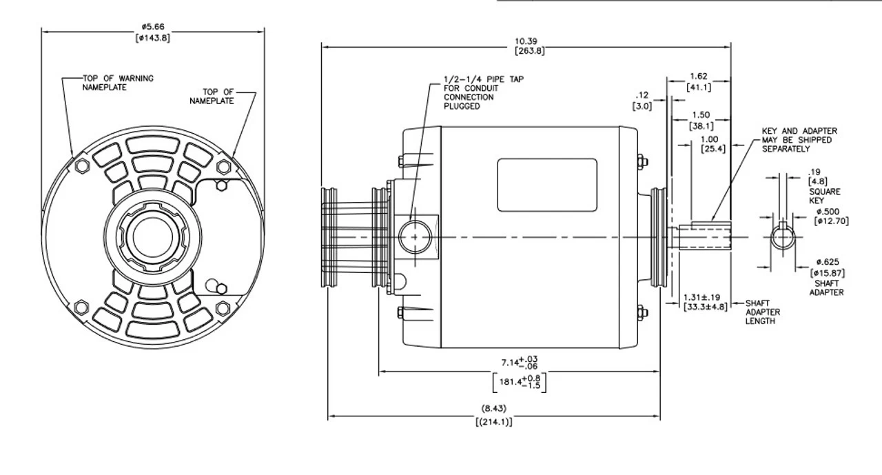 - NEMA 48 Frame Flat Shaft 1 5/8″ x 1/2″ Diameter, 1 speed