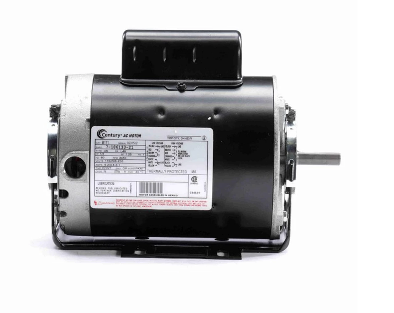- 1/3 hp 3600 RPM, 6.2/3.4-3.1 amps, 115/208-230 Volts 60 Hz, Capacitor Start