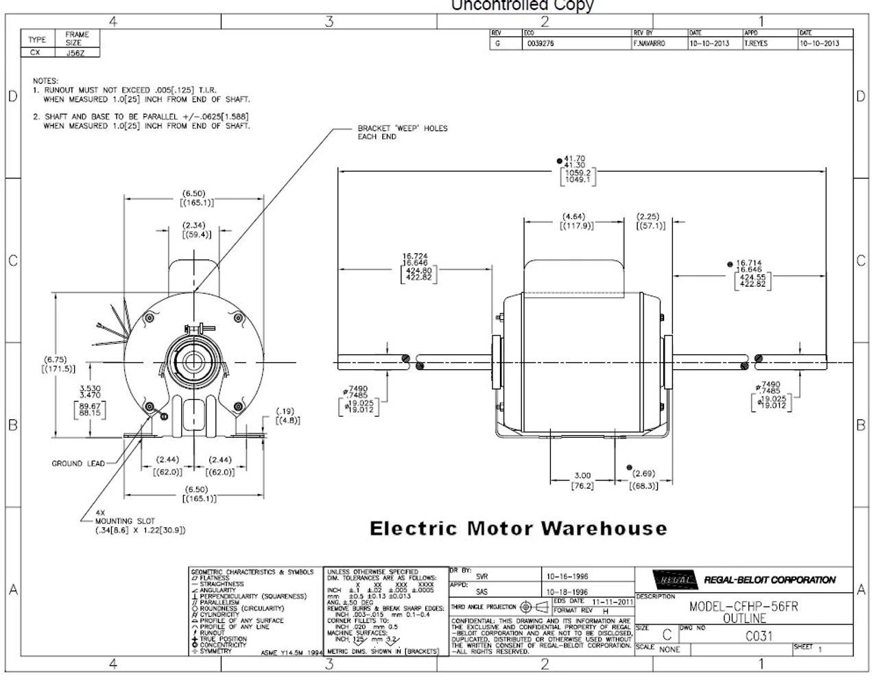- 1/12 HP 715 RPM, 2.0 amps, 115 Volts 60 hz.