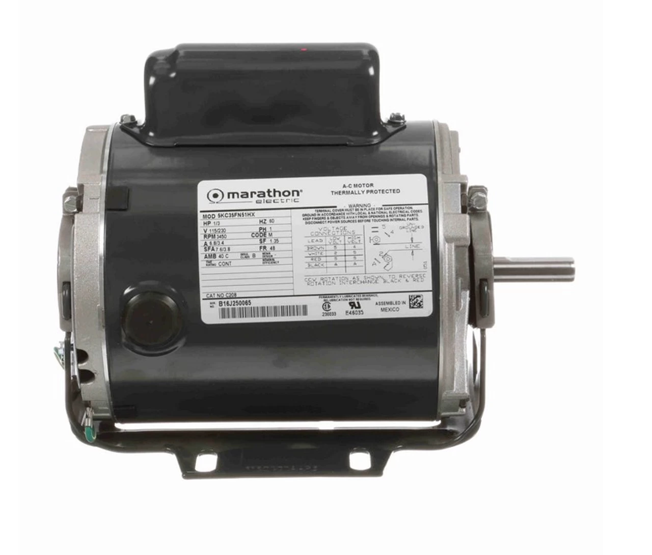 - 1/3 hp 3600 RPM, 6.8/3.4 amps, 115/230 Volts 60 Hz, Capacitor Start