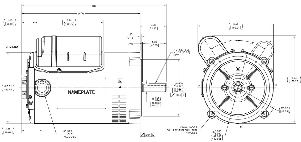 - NEMA 56C Rolled Steel frame, C-face, Keyed Shaft 5/8″ Diameter x 1 7/8″