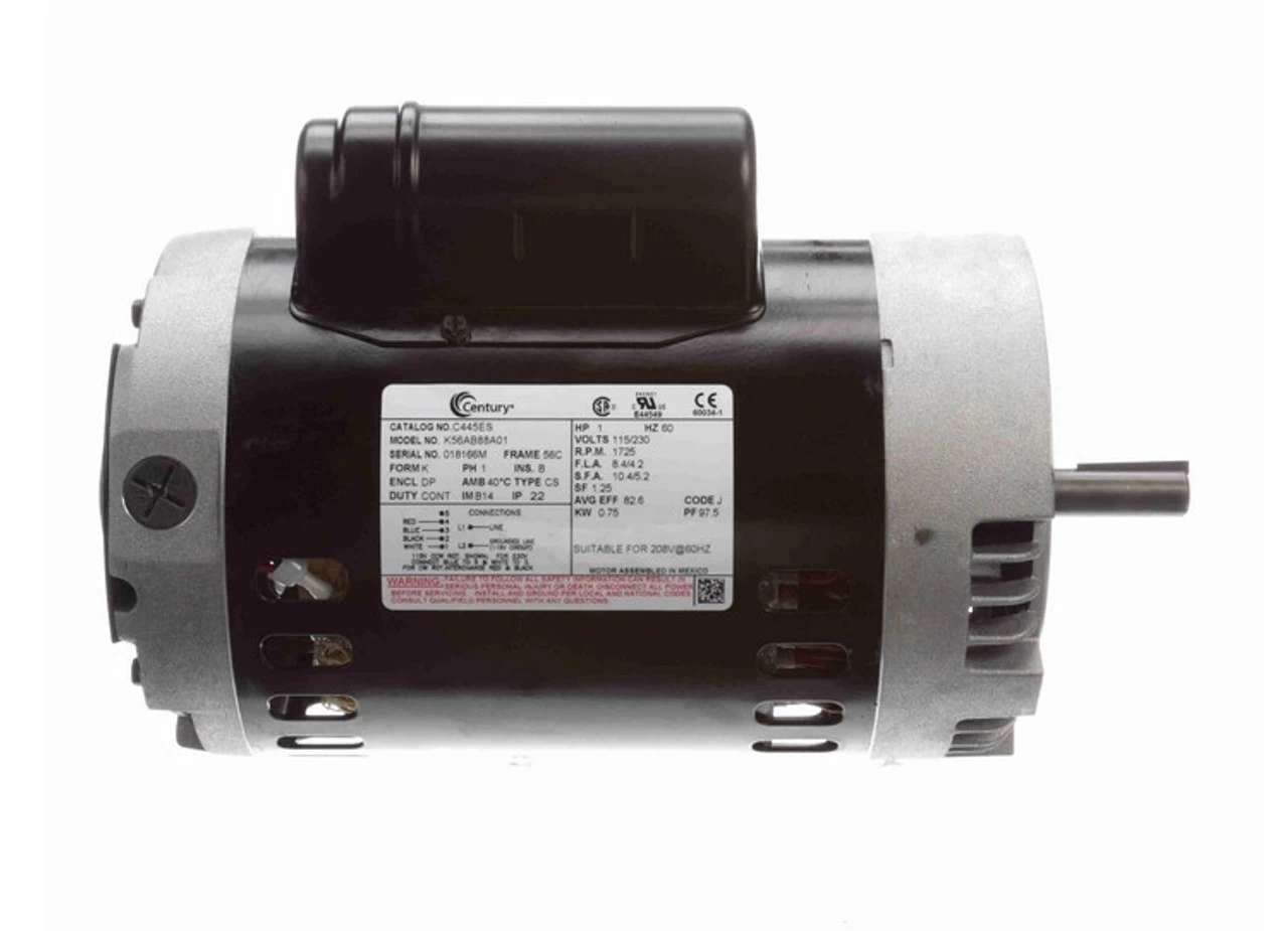 - 1 hp 1800 RPM, 8.4/4.2 amps 115/230 Volts 60hz. Capacitor Start – Induction Run Motor