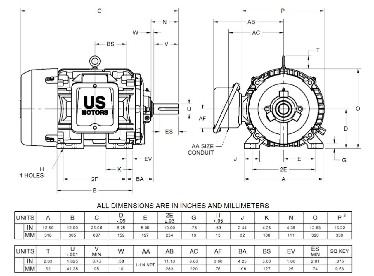 - NEMA 256T Cast Iron frame Keyed Shaft 1 5/8″ Diameter x 4″
