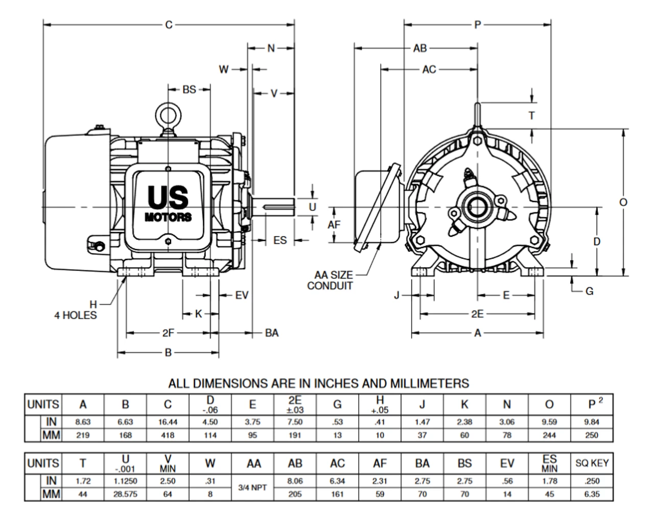 - NEMA 184T Cast Iron frame, Keyed Shaft 1 1/8″ Diameter x 2 3/4″