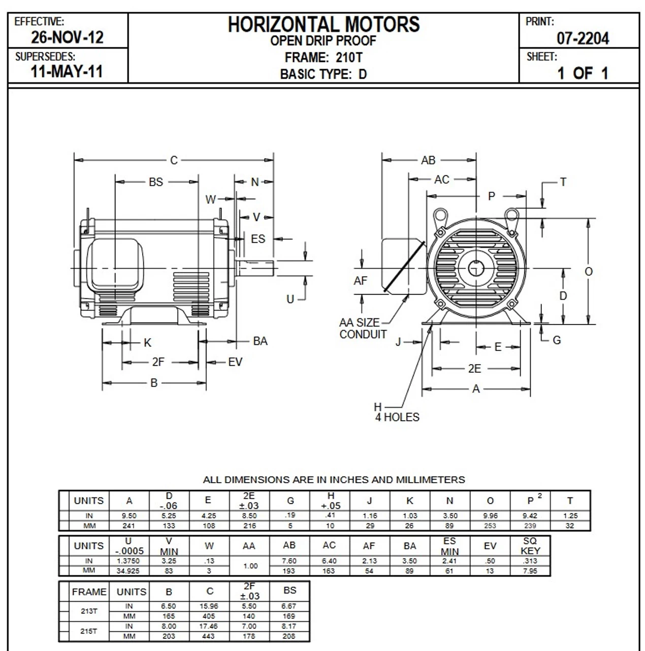 - NEMA 215T frame Keyed Shaft 1-3/8″ x 3 3/8″