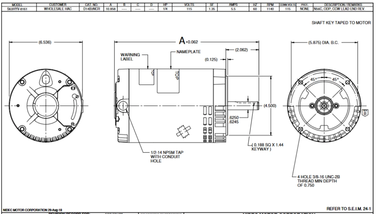 - NEMA 56C Rolled Steel Frame, Keyed Shaft 5/8″ Diameter x 1 7/8″