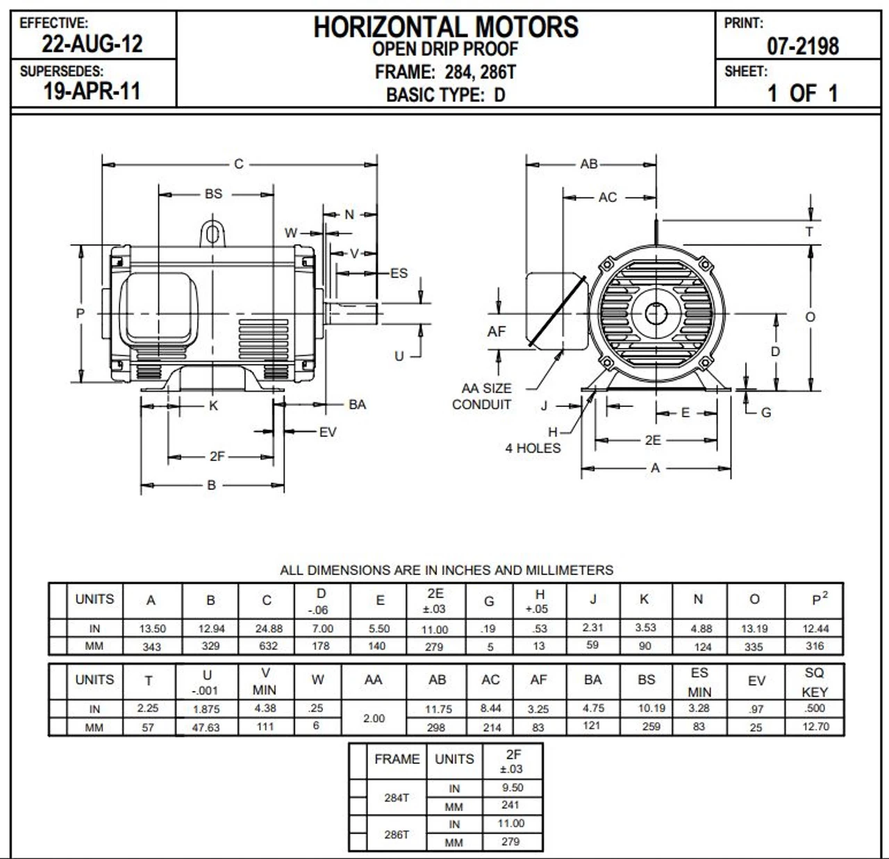 - NEMA 286T Frame Keyed Shaft 1 7/8″ Diameter x 4 5/8″