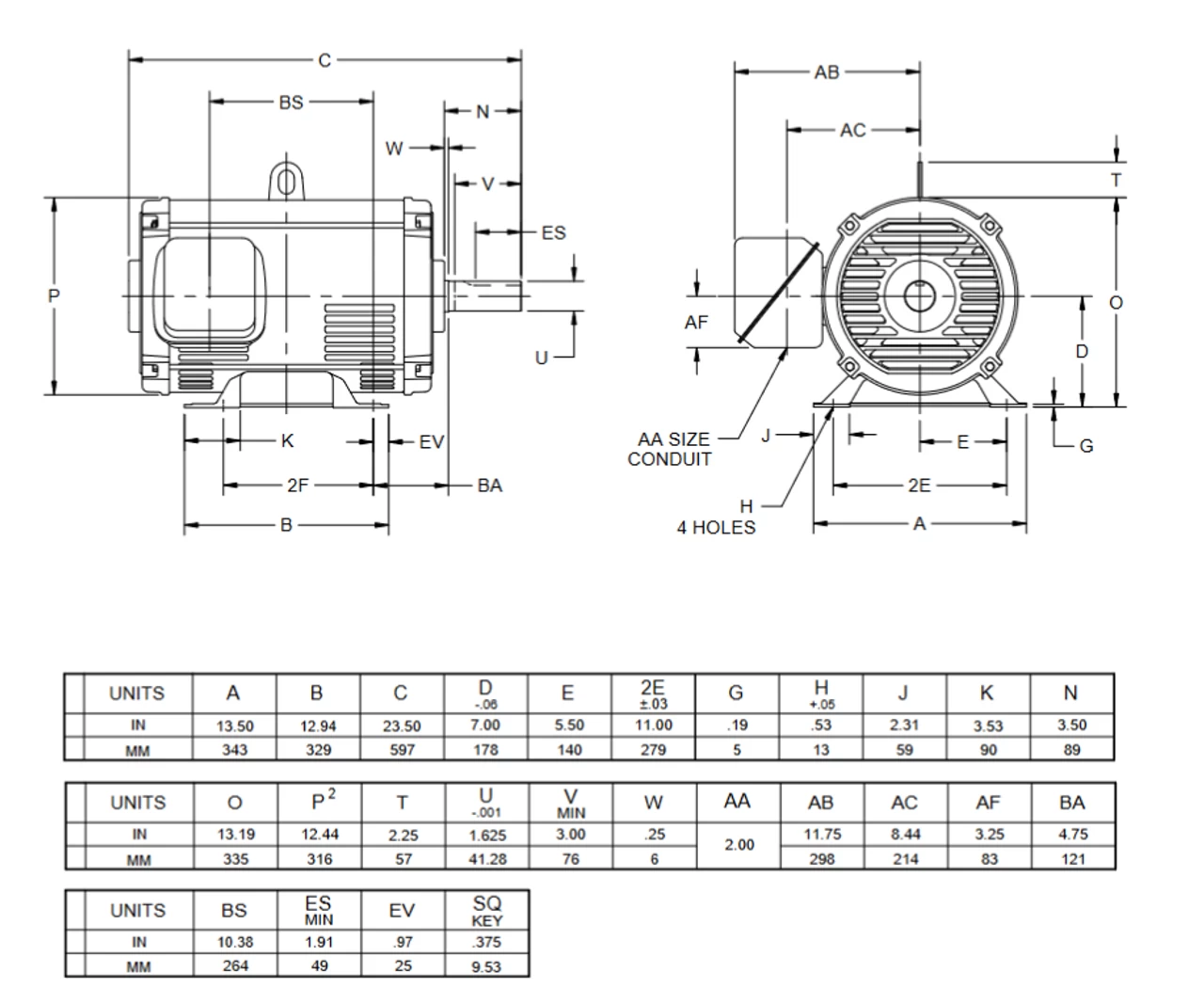 - NEMA 284TS Rolled Steel Frame, Keyed Shaft 1 5/8″ Diameter x 3 1/4″