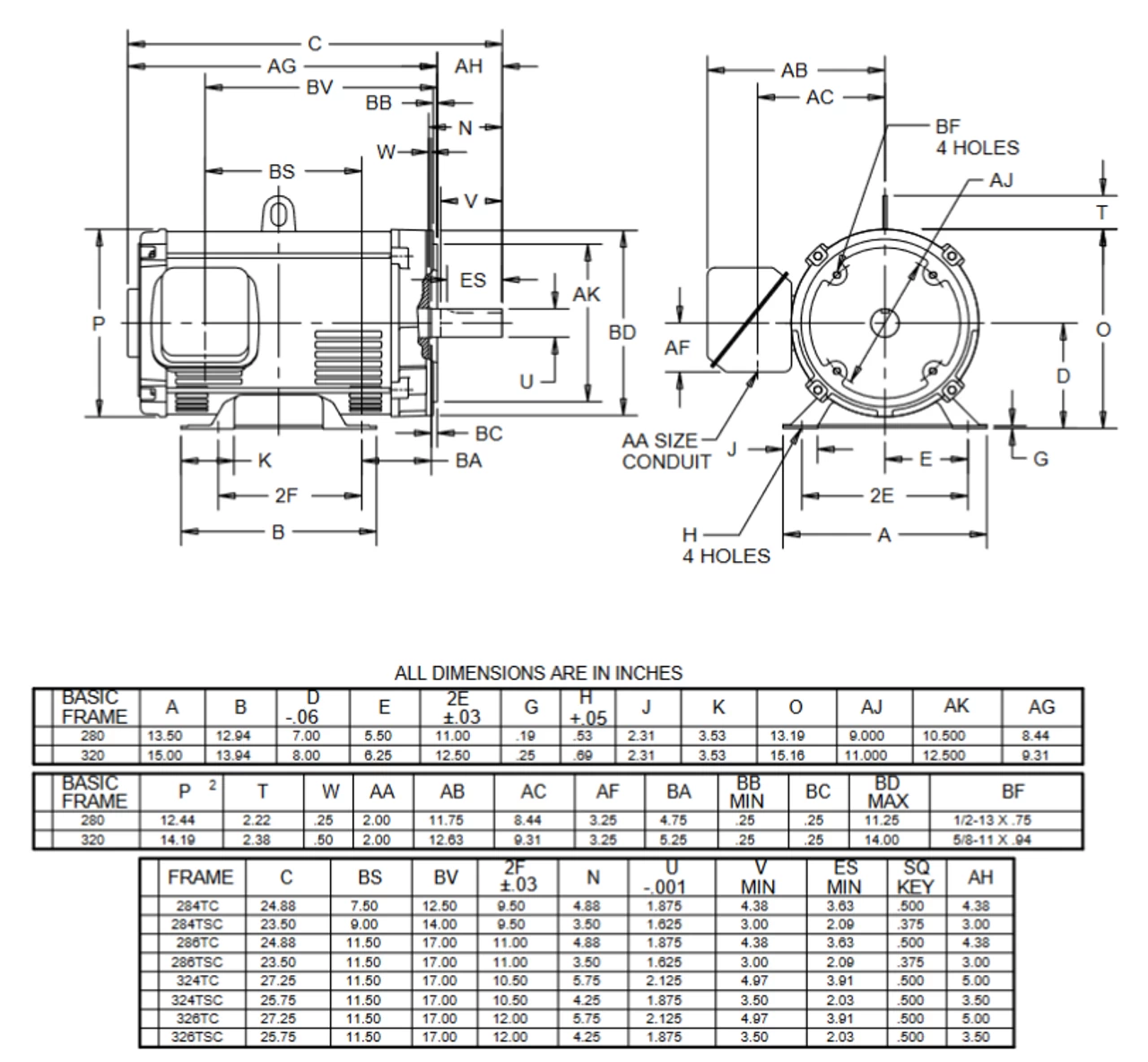 - NEMA 286TC frame Keyed Shaft 1 7/8″ Diameter x 4 5/8″