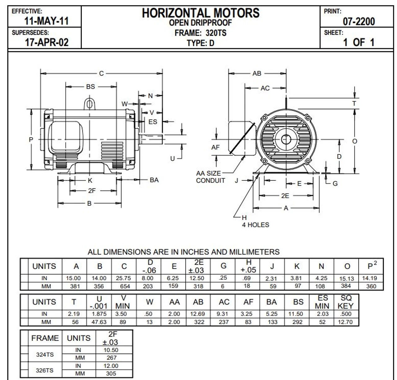 - NEMA 324TS Frame Keyed Shaft 1 7/8″ Diameter x 3 3/4″