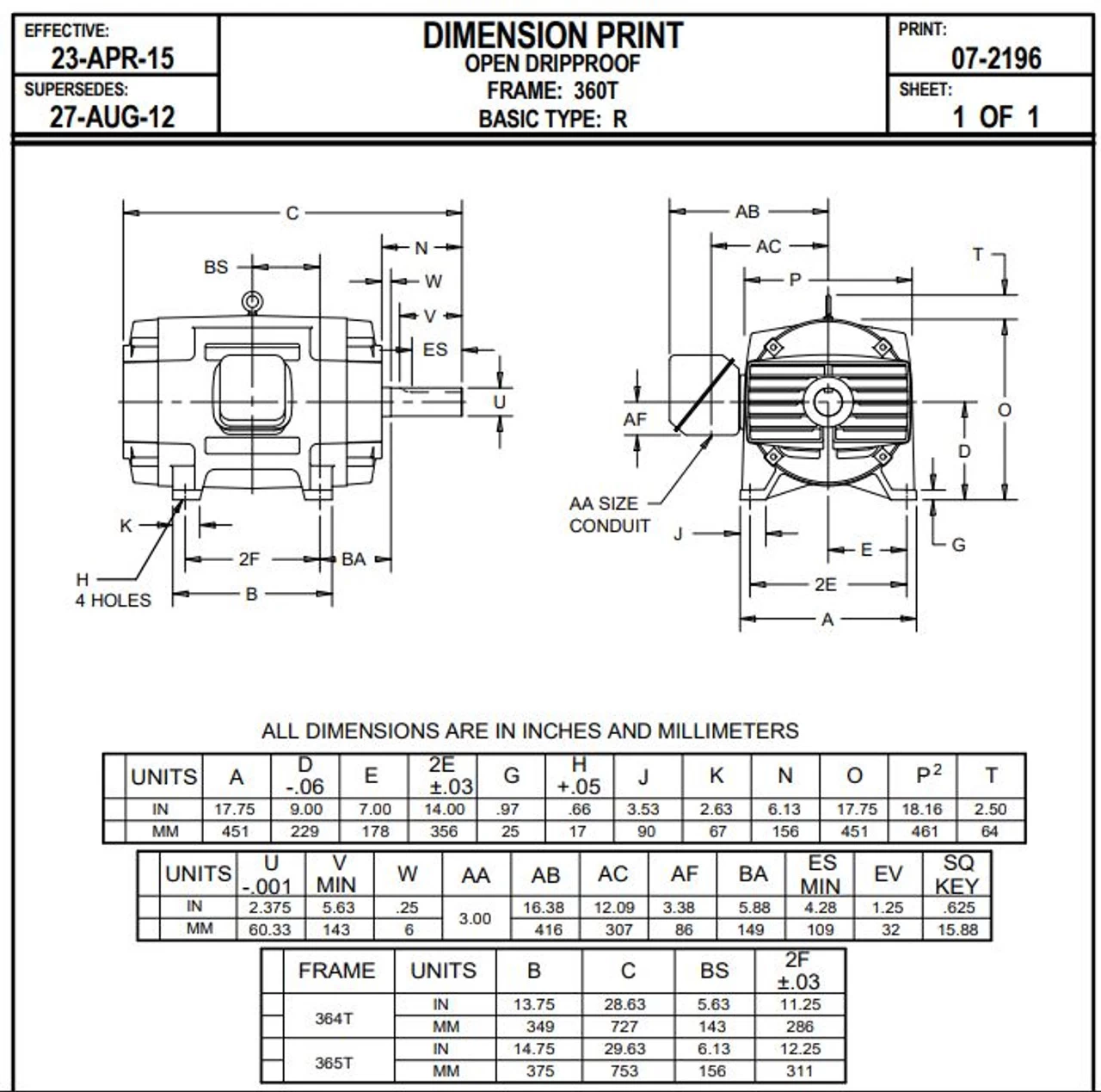 - NEMA 365T Frame Keyed Shaft 2 3/8″ Diameter x 5 7/8″