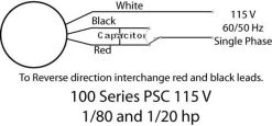- 1/20 hp, 95 RPM, 0.62 amps, 115 volts, 60/50HZ.