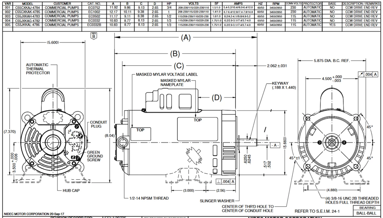 Commercial C-Face pump motor can be used for many applications. Wiring diagram on motor name plate. ODP = Open Drip Proof. C055KAG4782014J