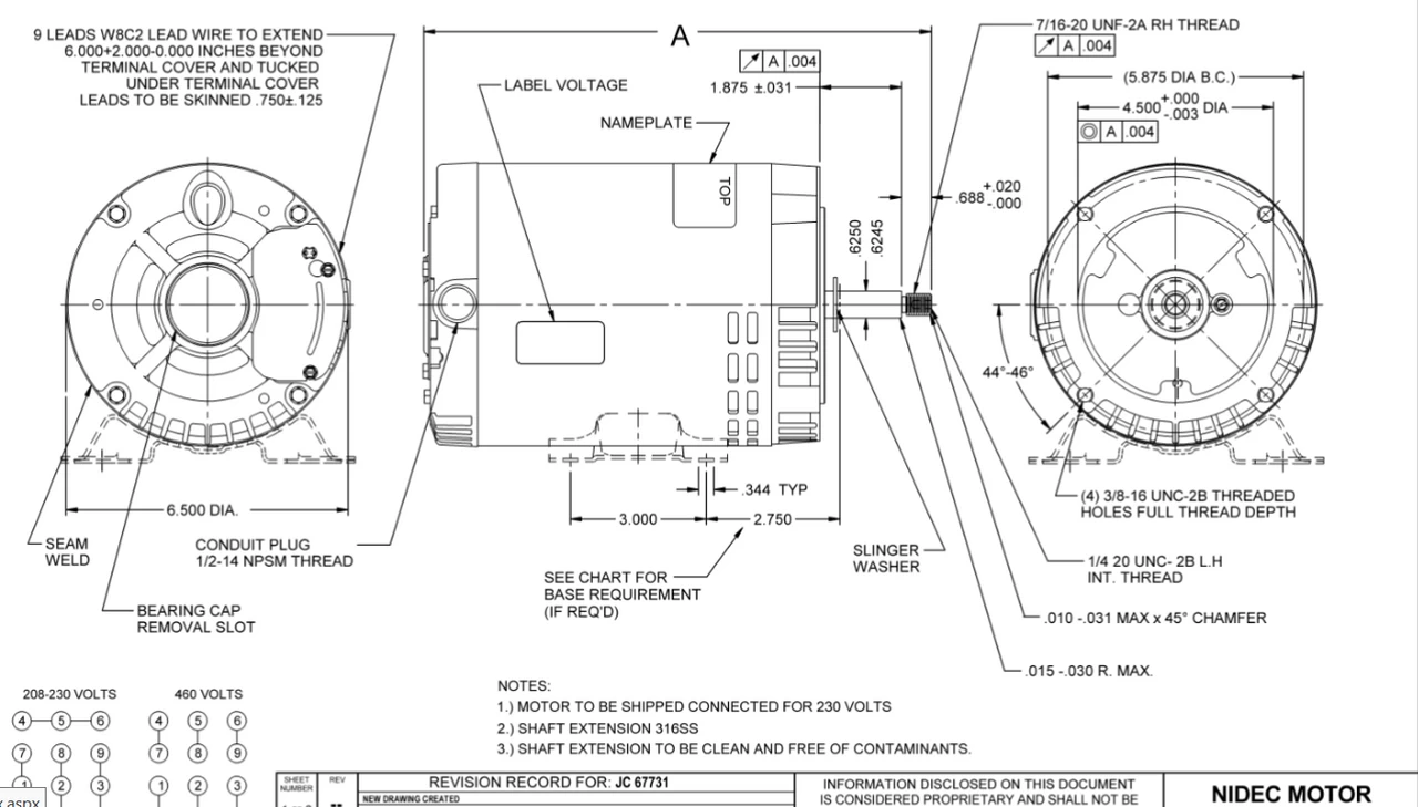 Special purpose three phase C- Face motor is usually used in commercial applications involving specialized pumps. Wiring diagram on motor name plate. ODP = Open Drip-Proof. P063EKU5009013J