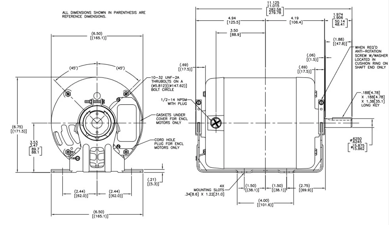 - Resilient Base, Reversible, Ball Bearings, Class B insulation