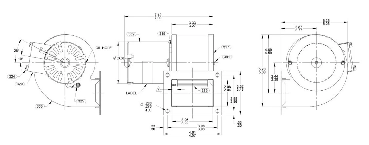 FASCO A166 Rectangular Outlet Shaded Pole Centrifugal Blower