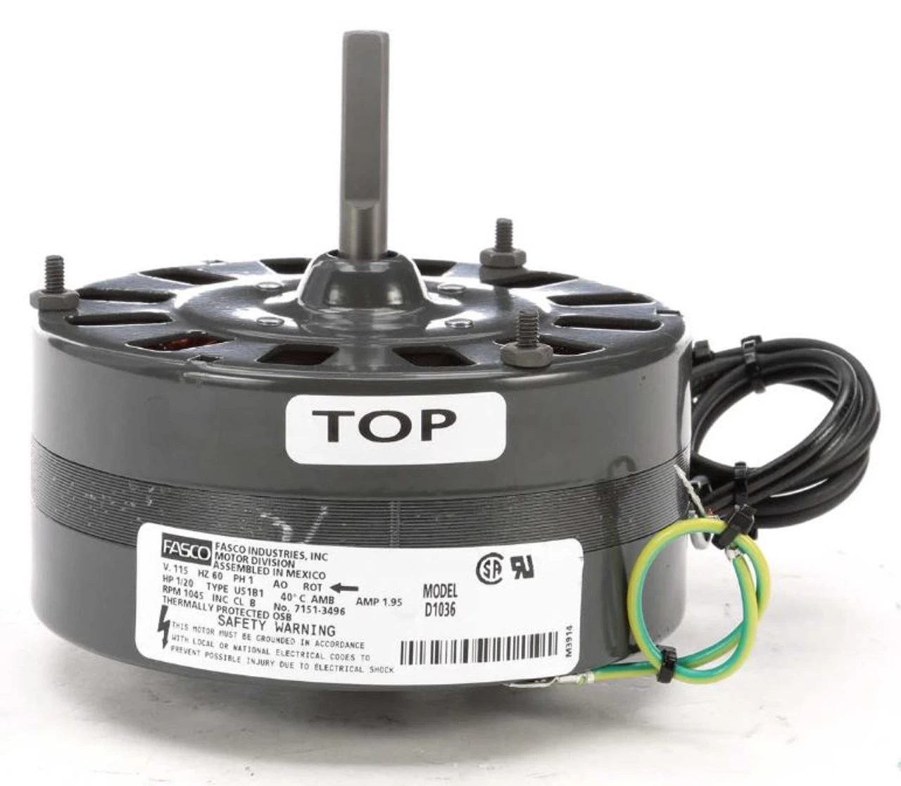 - 1/20 hp, 1045 RPM, 2.0 amps, 115 Volts 60hz.
