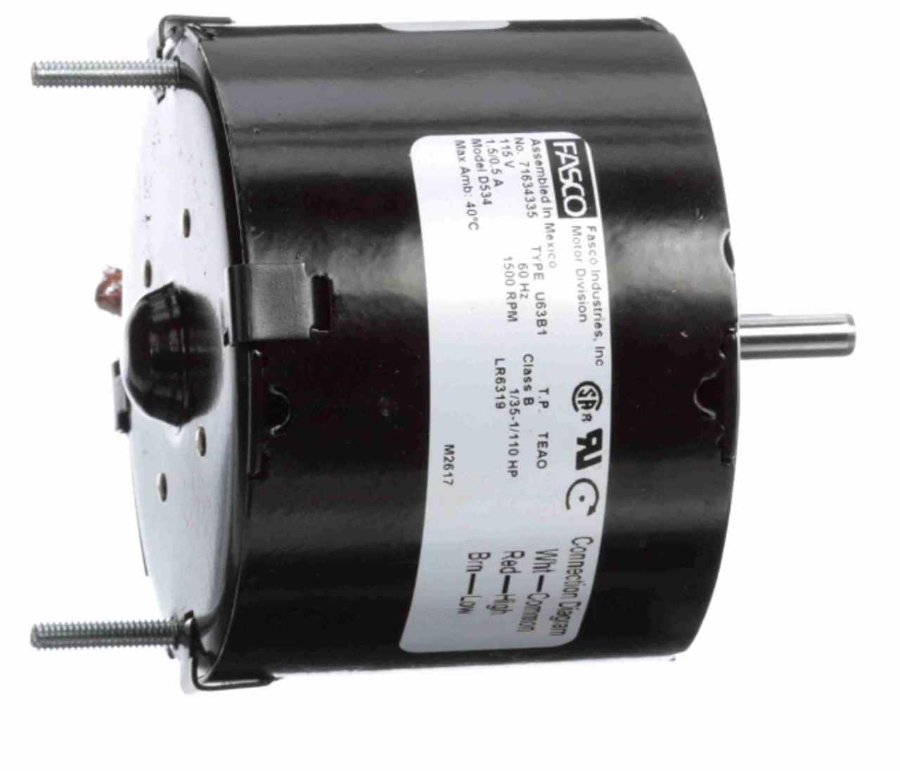 - 1/35 hp 1550 RPM, 1.5 amps, 115 Volts 60hz.