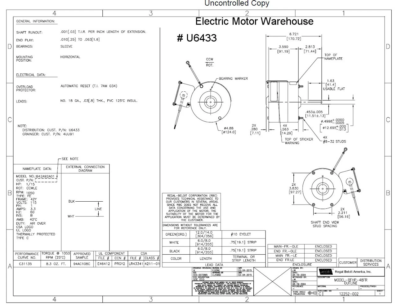 Reference: B42A92A01, Dayton 3M582, 4UU91
