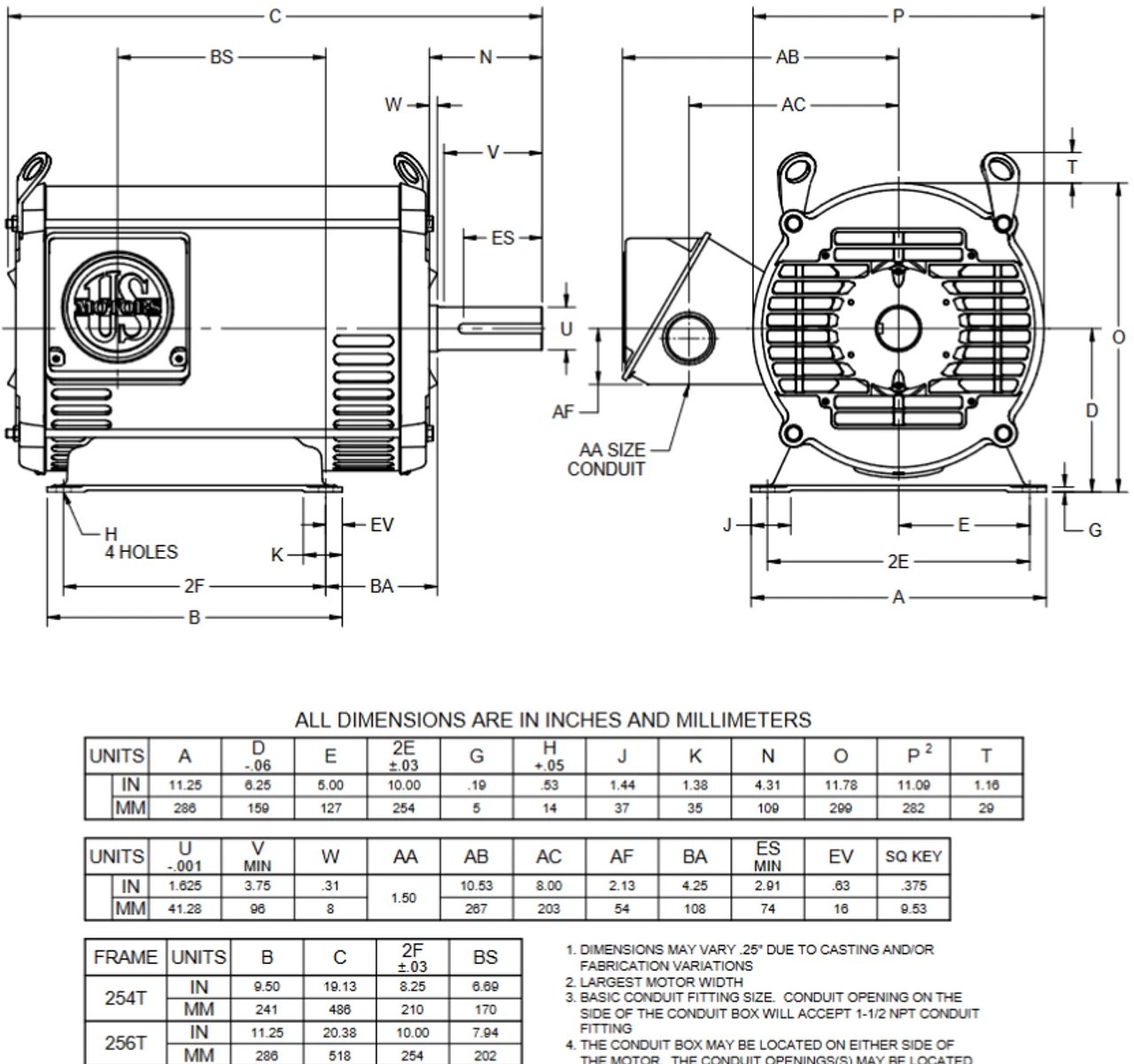 - NEMA 256T Rolled Steel Frame, Keyed Shaft 1 5/8″ Diameter x 4″
