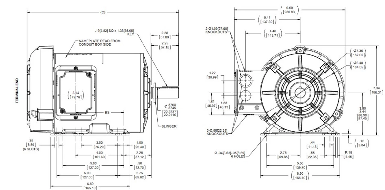 - NEMA 143T frame, Keyed Shaft 7/8″ Diameter x 2 1/4″
