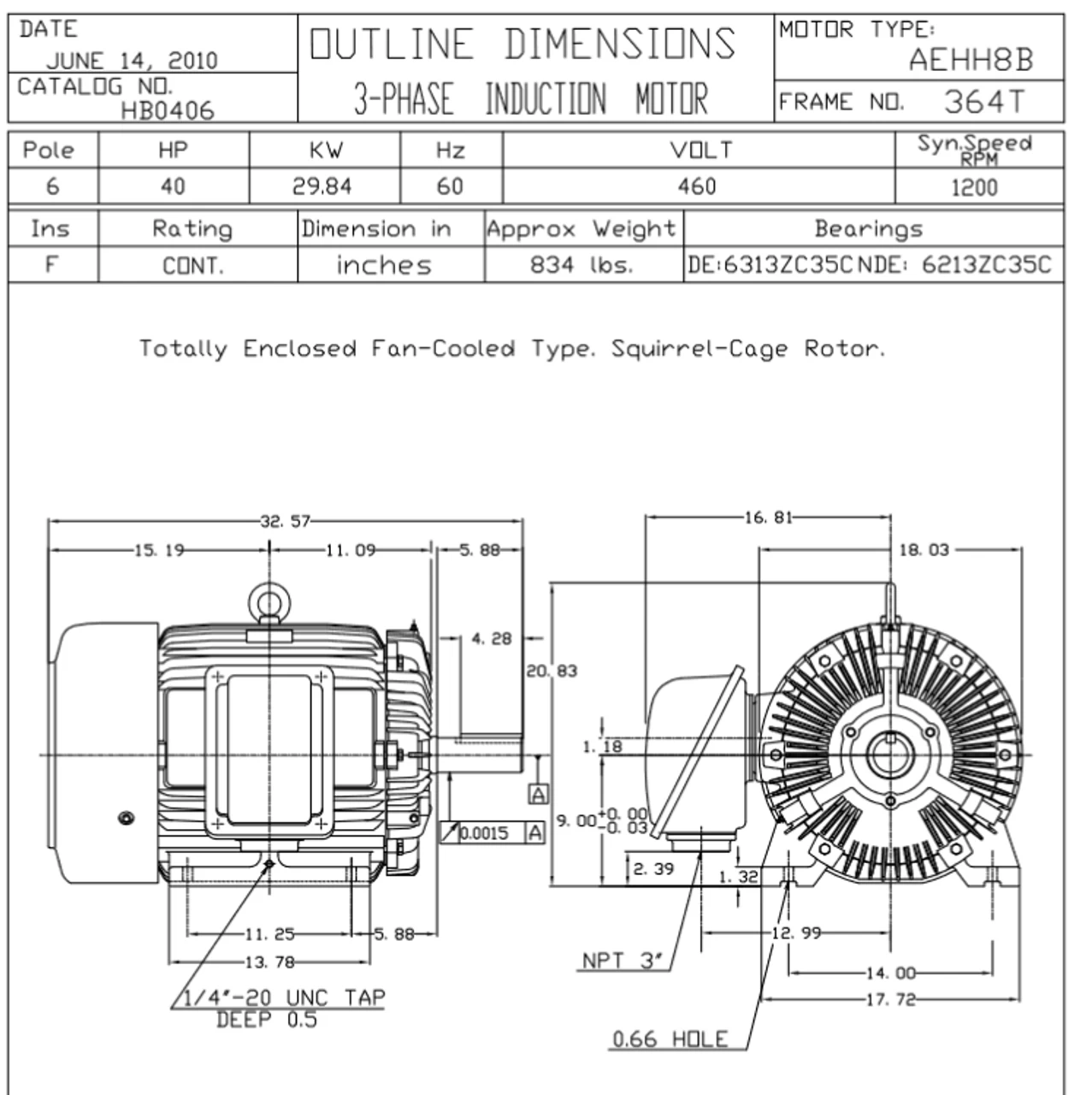 - NEMA 364T Frame, 5 7/8 x 2 3/8″ Dia. Keyed Shaft