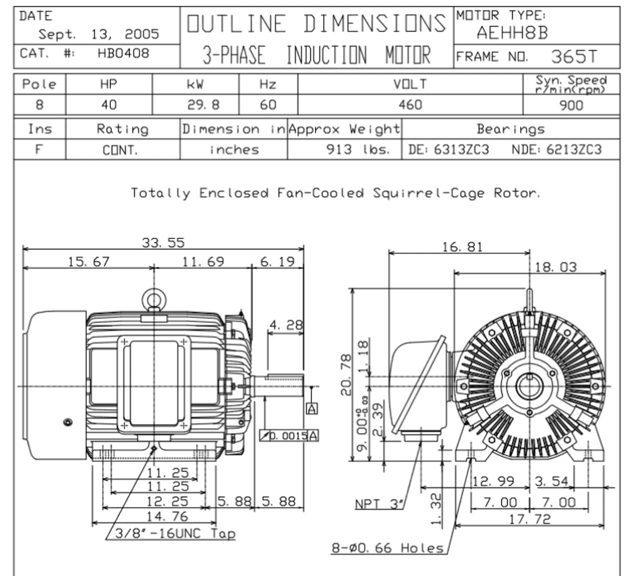- NEMA 365T Frame, 5 7/8 x 2 3/8″ Dia. Keyed Shaft