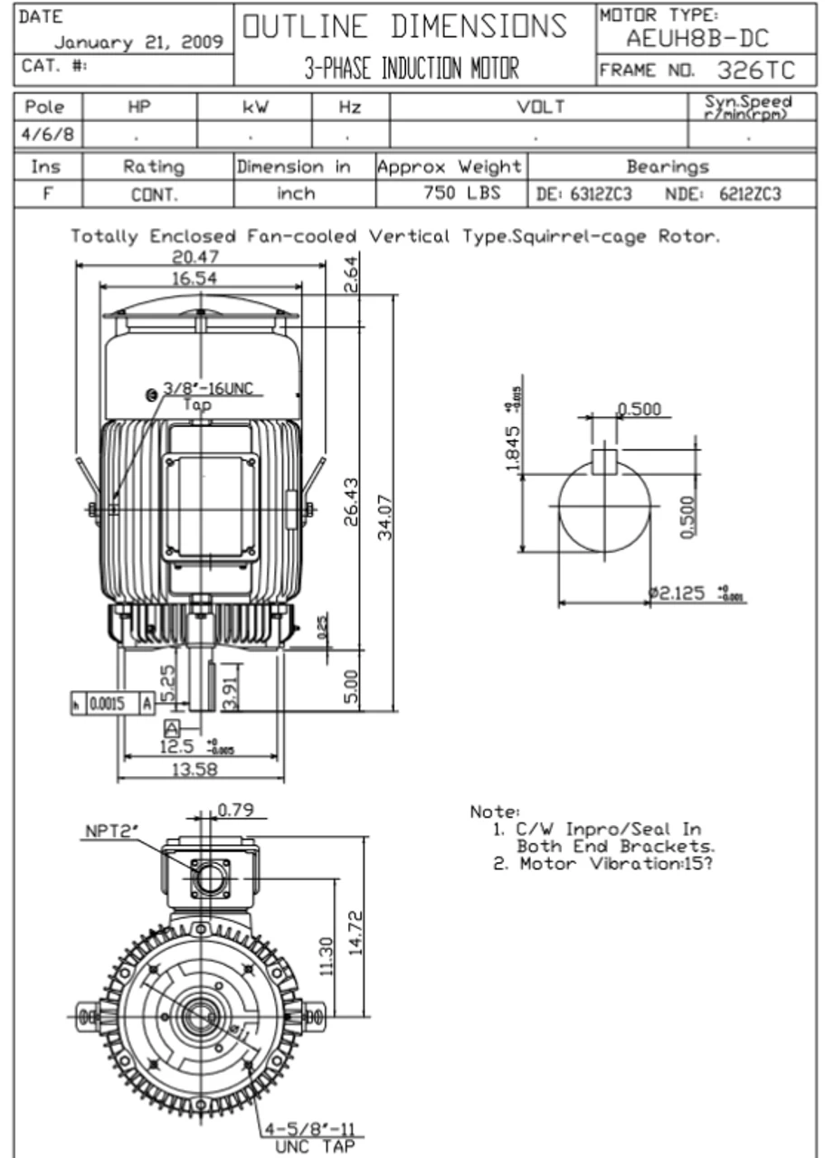 - NEMA 326TC Frame, 5 x 2 1/8″ Dia. Keyed Shaft