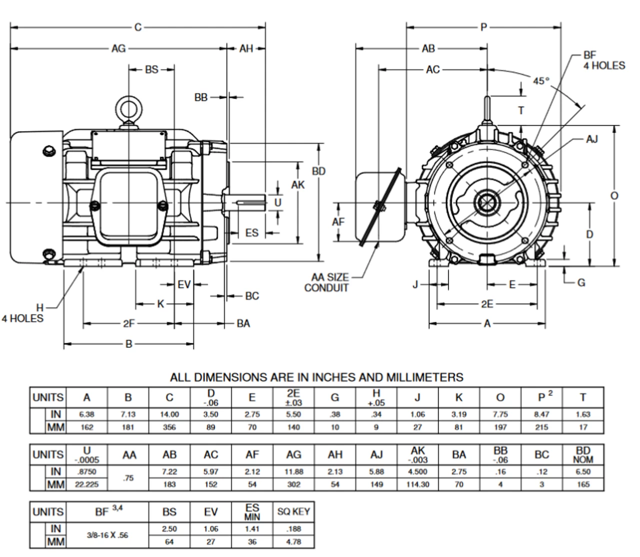 - NEMA 145TC Cast Iron Frame, Keyed Shaft 7/8″ Diameter x 2 1/4″