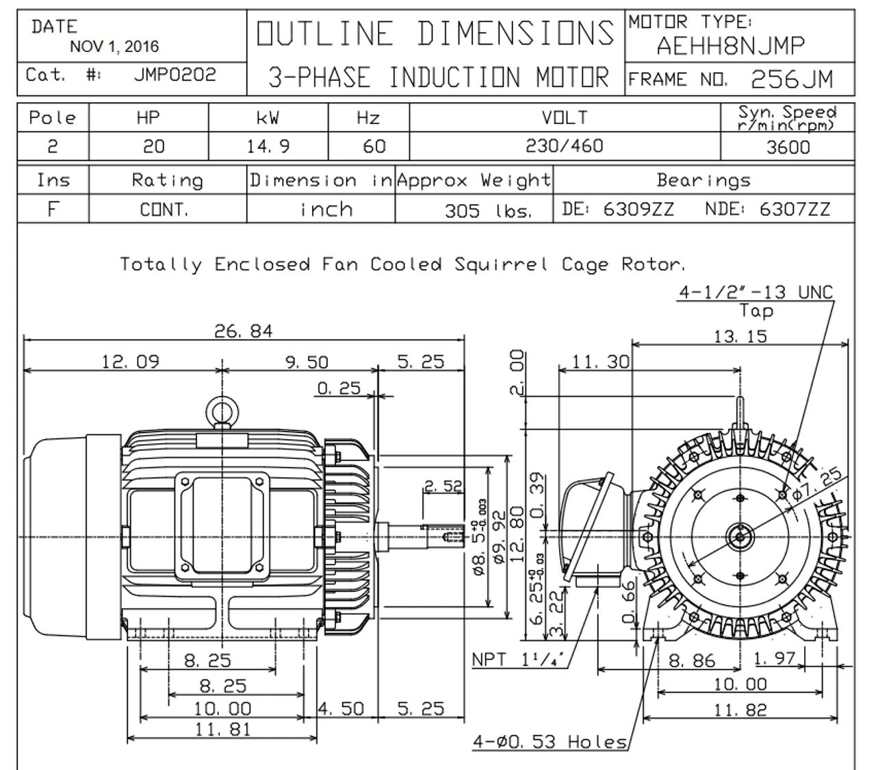- NEMA 254/256JM Frame, Special Shaft