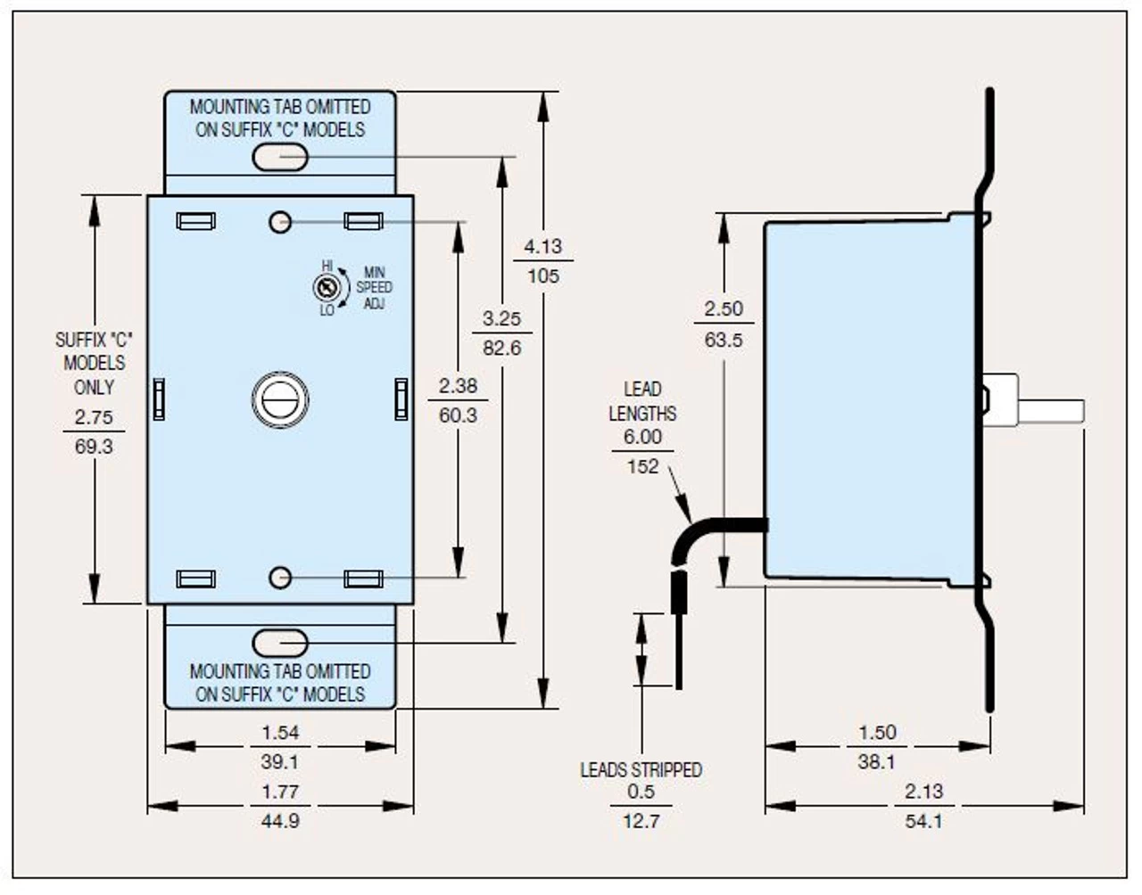 - Mounting kit that includes dial plate, knob, mounting screws, wire connectors and instructions