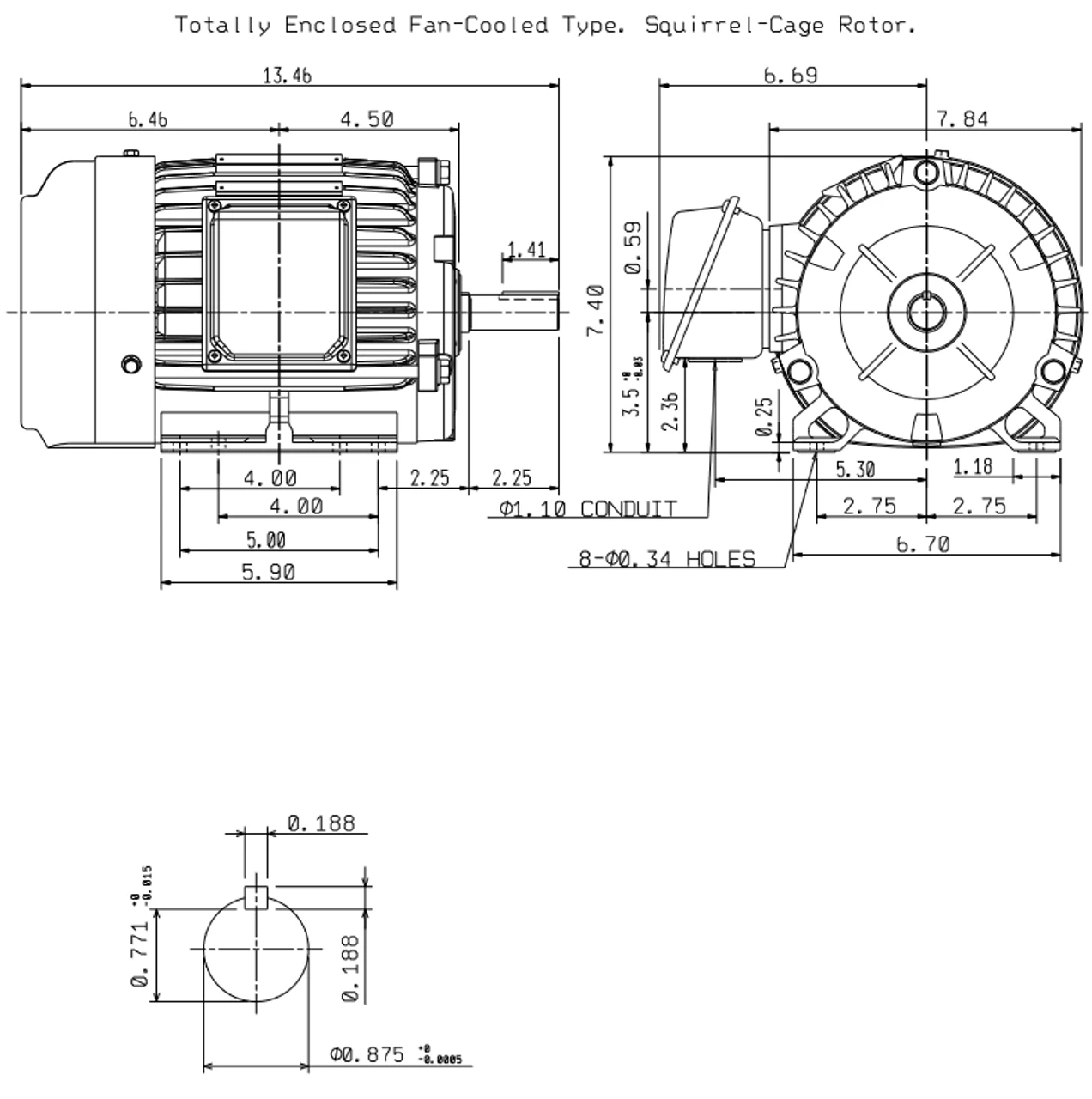 - NEMA 143T Frame, Keyed Shaft 7/8″ Diameter x 2 1/4″