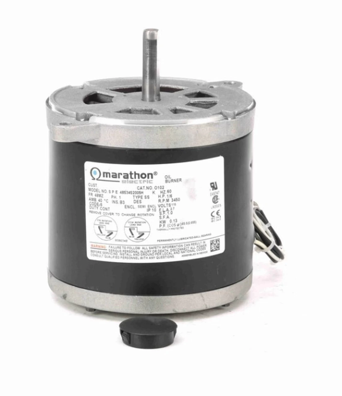 - 1/6 hp 3450 RPM, 2.7 amps, 115 Volts 60 Hz, Split Phase, Oil Burner Mount