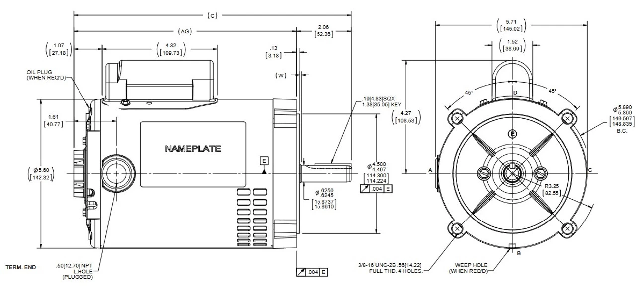 - NEMA 56C Frame Shaft 2″ x 5/8″ Diameter, 1 speed