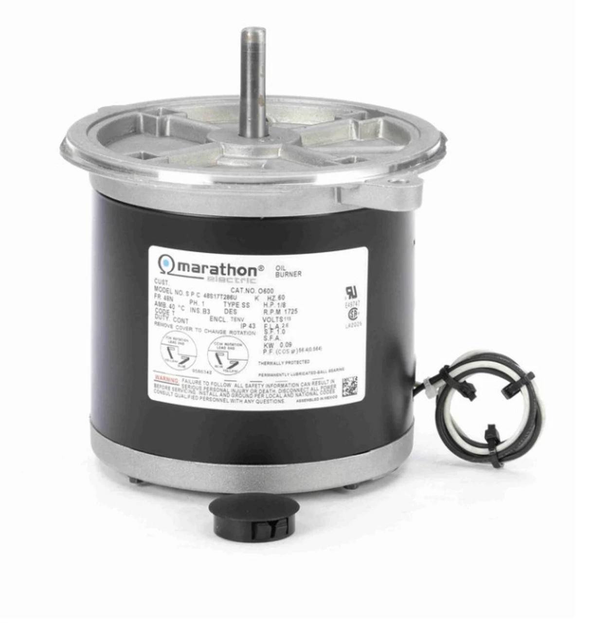 - 1/8 hp 1725 RPM, 2.6 amps, 115 Volts 60 Hz, Split Phase, Oil Burner Mount