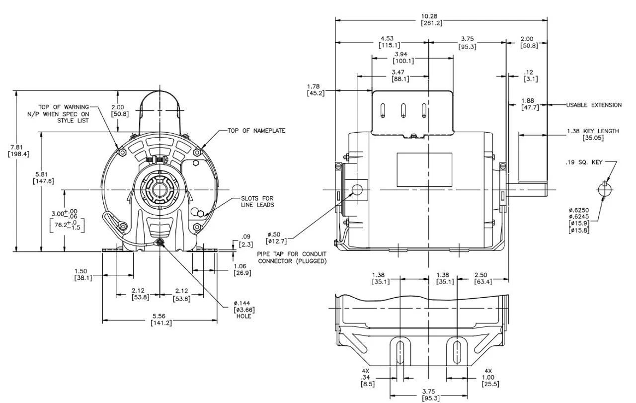 - NEMA 48Z Frame Flat Shaft 1 1/2″ x 1/2″ Diameter, 1 speed