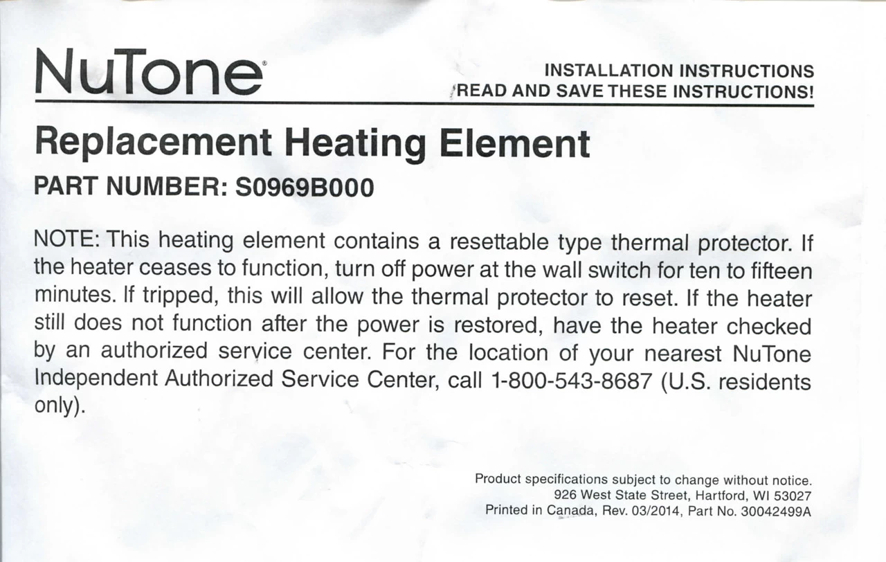 Fits Nutone Model: 605RP, 660RP, 665RF, 665RP, 665RSP, 9965-R02