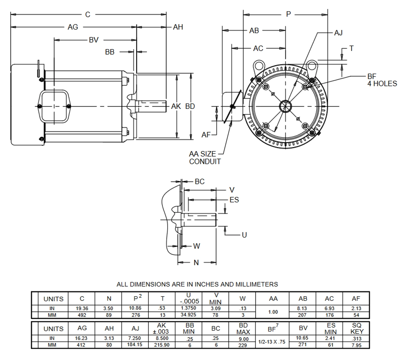 - NEMA 213TC frame Keyed Shaft 1 3/8″ Diameter x 3 1/8″